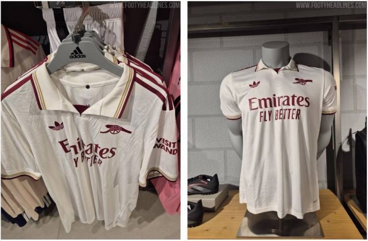 直播吧7月31日讯 足球装备网站footyheadlines透露阿森纳25-26赛季第三客场球衣信息,球衣主色调为白色,红色(该网站将其描述为褐红色)以及金色来进行搭配点缀。